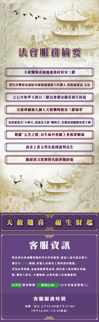(完售)天赦懺悔求福補運進財祈安三獻法會服務 - 乙巳年