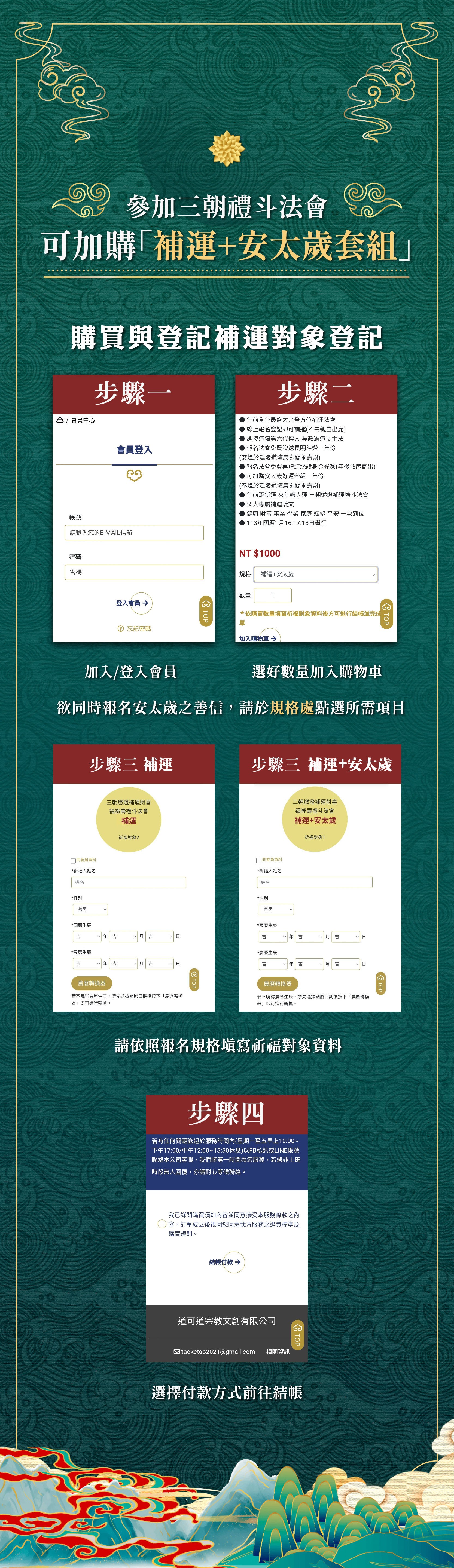 ● 可加購安太歲好運套組一年份(奉燈於延陵道壇庚玄閣永壽殿)