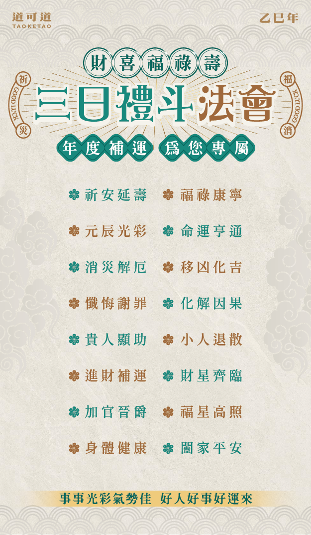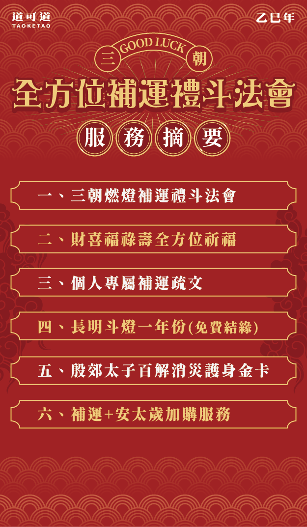 三朝燃燈補運財喜福祿壽禮斗法會服務 - 乙巳年