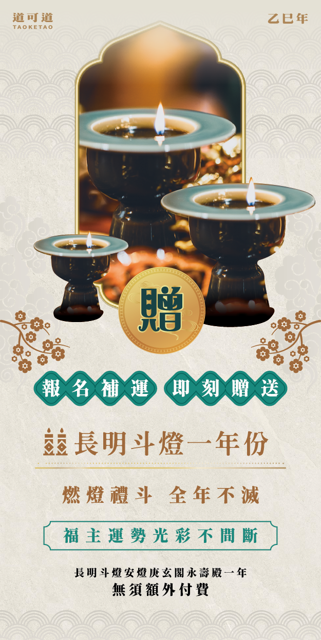 ● 免費贈送長明斗燈一年份(安燈於延陵道壇庚玄閣永壽殿)